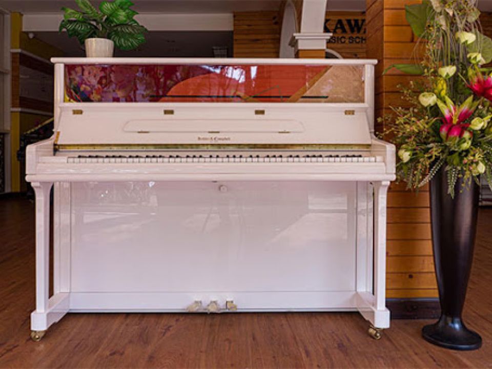Kohler & Campbell J310B nổi bật với trắng kiêu sa cùng với những nét vẽ đầy tính nghệ thuật. Cây đàn có kích thước linh hoạt, phù hợp cho bất kỳ không gian nào.
